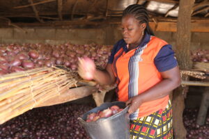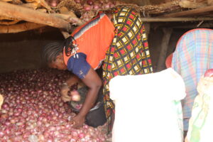 La reprise des activités de production en juillet 2025, rendue possible par le retour progressif de la stabilité, a été un défi immense en raison de l’épuisement des économies familiales. C’est dans ce contexte que l’appui du PCRSS-Burkina est intervenue de manière déterminante. Grâce à l’appui apporté à la coopérative Wendpanga des femmes productrices d’oignon, Emilienne a bénéficié de semences d’oignon et d’engrais (Urée et NPK) qui ont constitué un levier essentiel pour la relance de sa production. Depuis le 15 avril 2026, Emilienne avait fini de récolter sa production d’oignon. Dans la conserverie implantée dans la cour familiale, elle a stocké plus de 11 tonnes d’oignon, attendant le moment propice pour la vente.